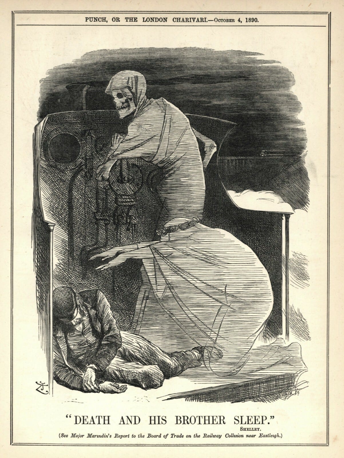 Who is in charge of the clattering train? asked Edwin Milliken, writing in Punch after the fatal crash at Eastleigh in July 1890. His answer was simple. Death was at the controls.